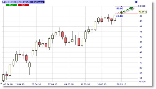In den letzten Tage erreichte Crude eine Zone unterhalb der wichtigen US$ 50-Marke. Es scheint, als würden die Käufer hier nochmal Kraft sammeln, um die letzte Hürde zu nehmen. Als technisches Ziel kann man das Swing-Hoch vom 9. Oktober 2015 bei US$ 50.90 ausmachen.